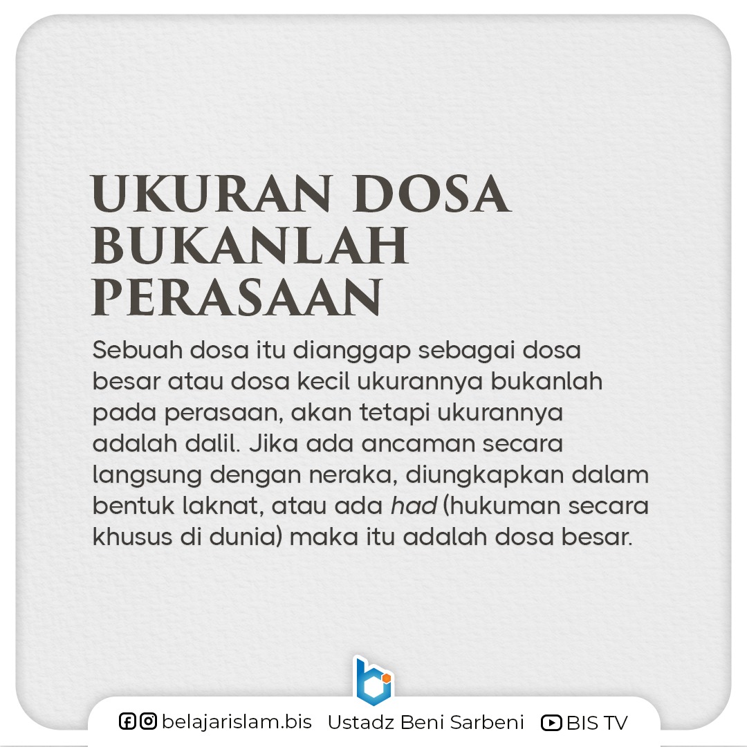 “Dosa besar itu adalah setiap dosa yang Allah Ta’ala ancamkan dengan api Neraka, dengan murka-Nya, dengan laknat, atau dengan adzab.”